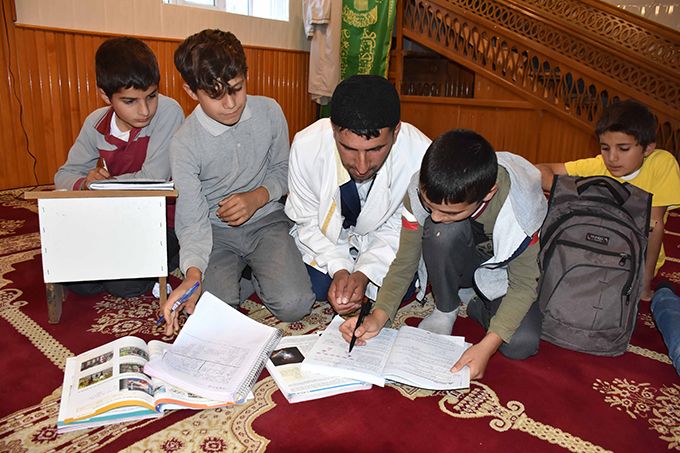Öğrencilerden Esma Akar da okuldan çıktıktan sonra hemen camiye gittiklerini anlatarak, “Camiye geldiğimizde ilk önce Kur’an-ı Kerim dersi alıyoruz ardından hocamızla okul ödevlerini yapıyoruz. Anlamadığımız soruları imama soruyoruz ve bize yardımcı oluyor. Camide ödevimizi bitirdikten sonra eve gidiyoruz, evde onları tekrar ediyoruz.” diye konuştu. Tarık Akar, camide derslerin yanı sıra oyun oynayarak da güzel zaman geçirdiklerini ifade etti.