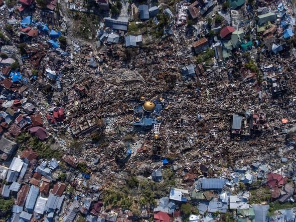 Endonezya’daki depremin yarattığı hasarın kuş bakışı görüntüsü paylaşıldı. Görüntülerde depremden en çok etkilenen şehir Palu’nun merkezi Sulawesi görüntülendi.